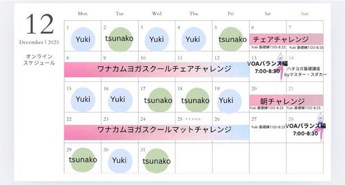 2月はvision of yoga継続の研修がありますので クラス数は減っております ➖オンライン➖ 平日5:30に加え、日曜日朝7:00の基礎クラスも スタートします。 初心者さんもどうぞ練習にご参加ください。 予約はいつでも承っています。 公式LINEこちらよりご登録後…